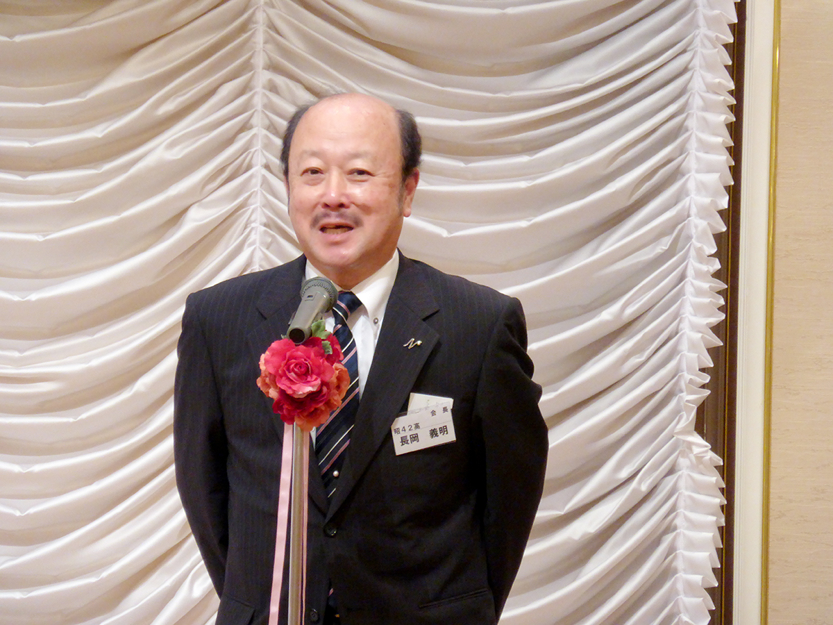 懇親会は、大聖寺高校吹奏楽部の演奏の後、大橋 自無さん(平15卒)の司会のもと、参与の西出隆則さん(昭47高普卒)による乾杯の発声で始まりました。